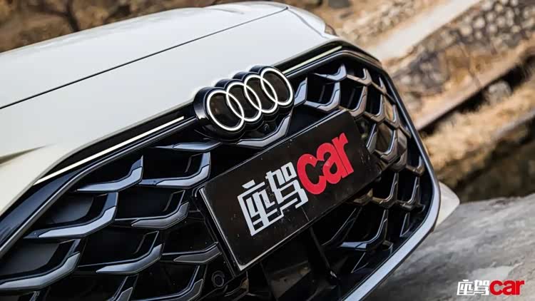 正面,六边形进气格栅进一步放大,蜂窝结构搭配哑光饰条,没有刻意强调攻击性,却在细节中释放出克制的张力。矩阵式LED大灯与可发光四环Logo构成极具辨识度的视觉符号;灯组内部的折线式日行灯,让整车在静止状态下依旧保有“正在行进”的动感。