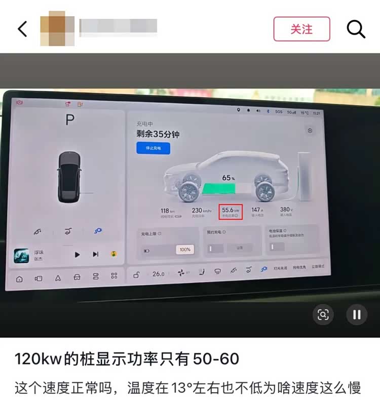图/某车主遇到充电功率不足的情况