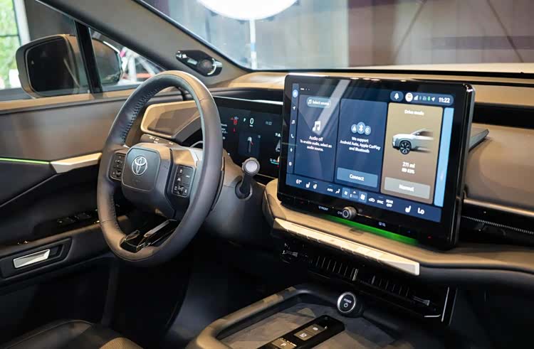 纯电汉兰达则基于丰田新的5G网络架构,集成更丰富的云端服务,驾驶辅助系统升级到了TSS 4.0版本,传感器与算法能力有所提升,采用14英寸中控屏+12.3英寸数字仪表的组合,物理按键则保留于温度控制区,同时标配64色氛围灯。但相较于目前的国产新能源,在辅助驾驶和座舱智能化方面依旧有差距。