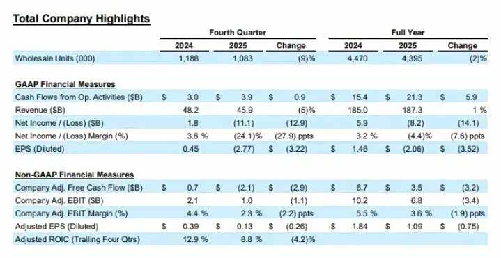 2月10日,美国百年巨头福特汽车发布了2025年度经营财报。