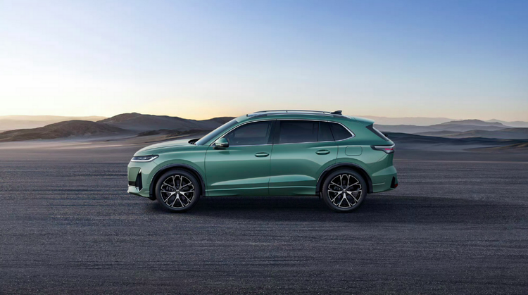 外观上,该车本质是途观L燃油版的新能源升级款,无颠覆性设计:前脸采用封闭式无边框菱形纹理面板,搭配解锁点亮式发光车标、IQ.Light矩阵大灯+双层LED灯组;下包围为三段式结构,两侧C型导流槽+中央进气口带主动格栅,可实现低温缩短热机时间、高温强化散热,均为新能源车型常规配置。