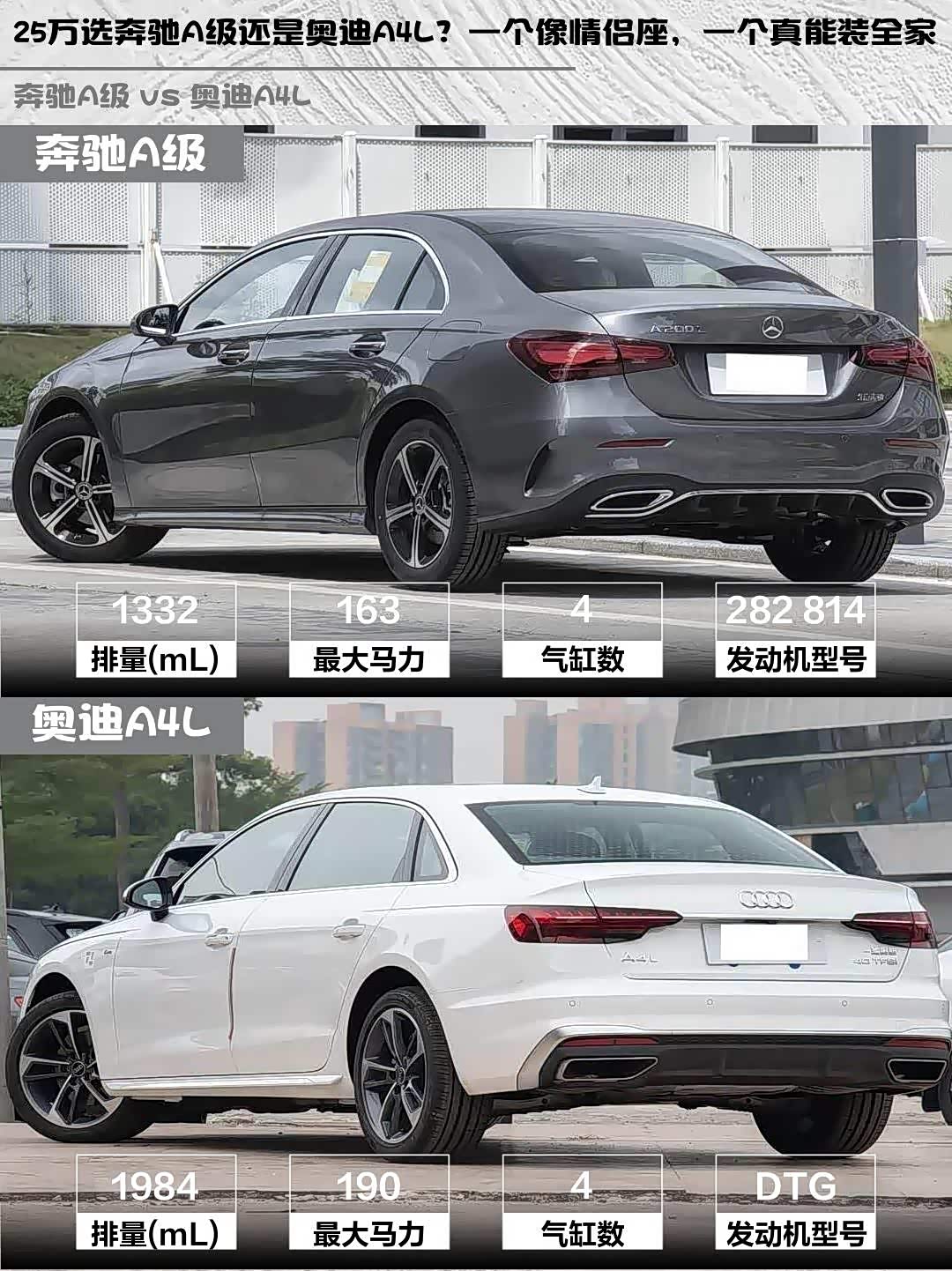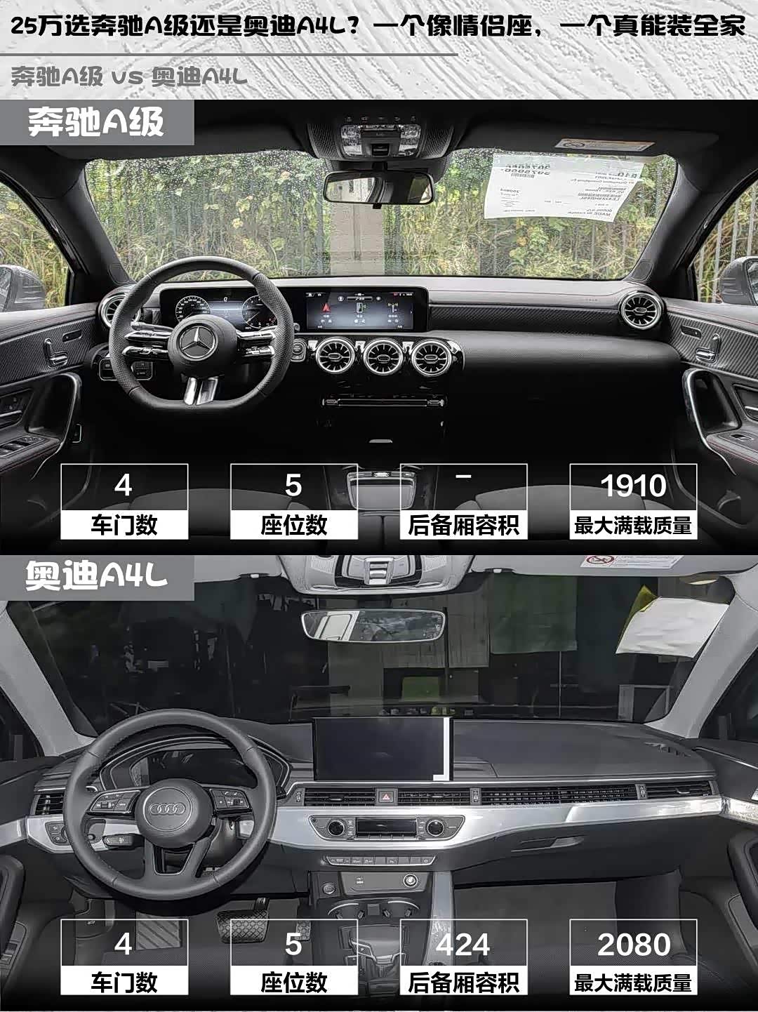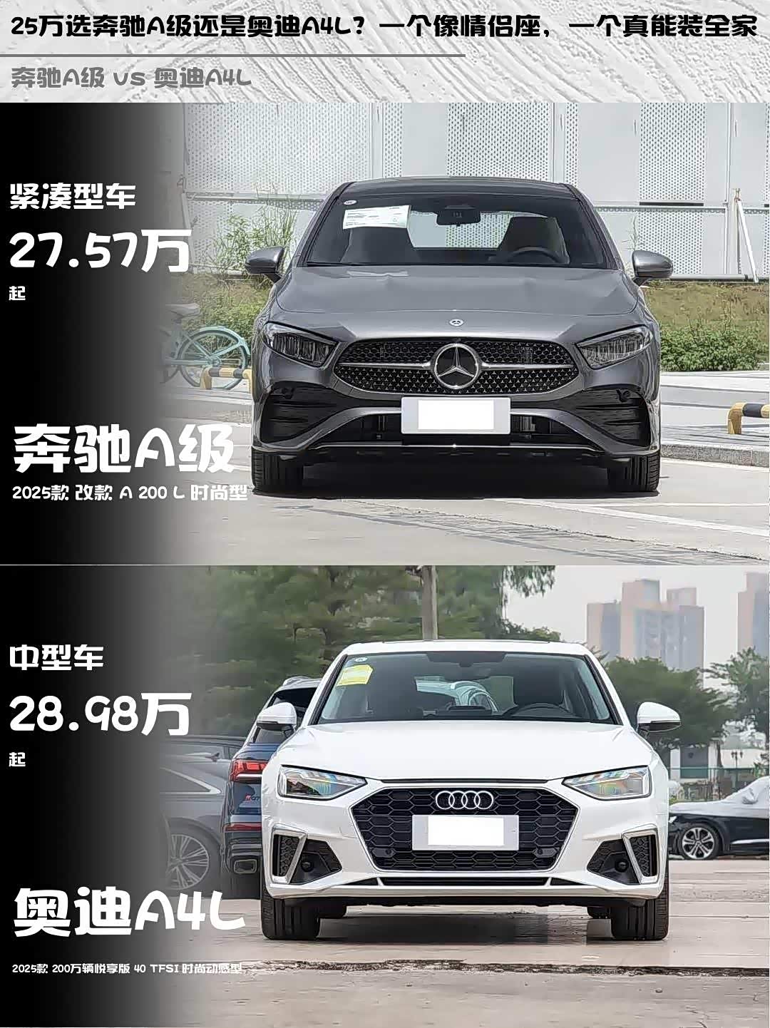 奔驰A级和 奥迪A4L(参数|询价)怎么选?25万预算纠结党看过来!🚗💨