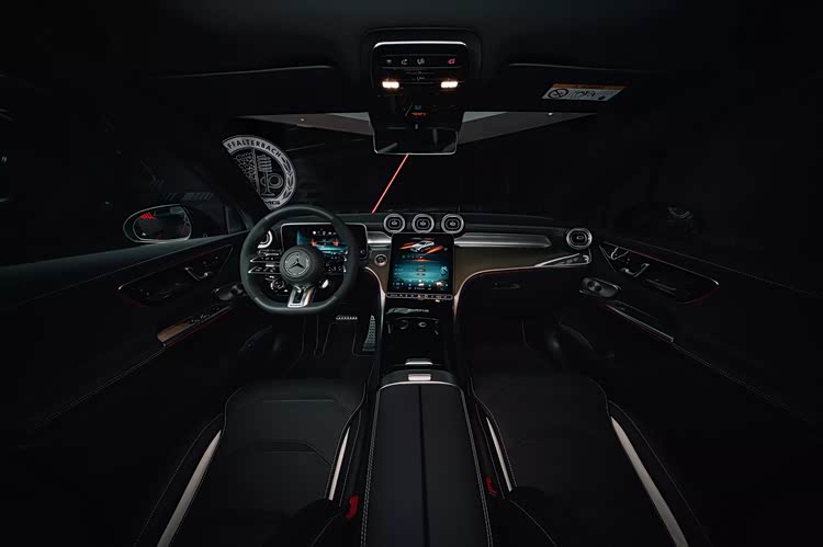 内饰方面同样没有太明显的调整,沿用了现款车型的布局,提供三幅式多功能方向盘、悬浮式全液晶仪表盘、垂直布局的中控屏以及电子怀档,大面积使用了碳纤维结构进行装饰,凸显了性能车的身份。