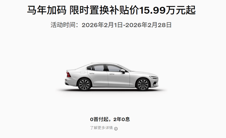 近期,沃尔沃S60便开启了马年加码限时活动,具体来看,此次活动时间为2026年2月1日至2026年2月28日,均可享受限时置换补贴价15.99万起。该价格需要叠加国补,实际购车价格还是由客户与沃尔沃汽车授权经销商协商确认。