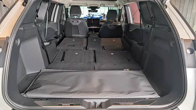 车内采用的2+3+2的七座椅布局,把第二排和第三排座椅放倒后,能够形成一个纯平的大空间,在空间的拓展性方面,依然是丰田的“传统手艺”,另外,前排座椅加热是全系标配,但是前排座椅通风和后排座椅加热则需要选装。
