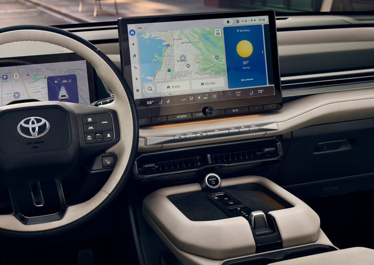 全新汉兰达纯电版的内饰焕然一新,内饰也延续了全新RAV4、威兰达的设计思路,和目前国内新能源车的悬浮式中控大屏和横向前IP台的风格类似,只是多了更多的实体按键。