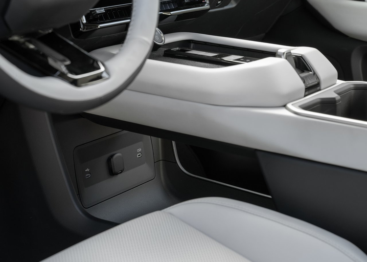 整个前IP台保留了12.3英寸全液晶仪表+14英寸悬浮式中控大屏的设计,主驾前方还有HUD的挖槽。而中控台也有贯穿式银色饰条与带缝线软质包裹,不过内饰图片以白色为主,看上去更有科技感、质感也更高级,而海外媒体拍摄的全黑内饰就显得有些廉价了。