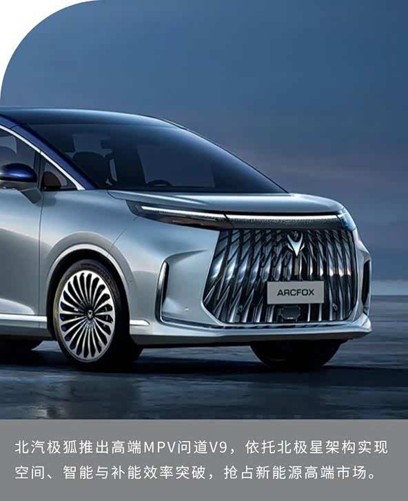 2026年2月,北汽极狐发布全新高端产品序列问道,首款车型 问道V9(参数|询价)剑指中大型高端电动MPV市场,以5300mm车长、3200mm轴距的越级空间,直接对标腾势D9、小鹏X9等标杆车型,将于年内正式登陆市场。