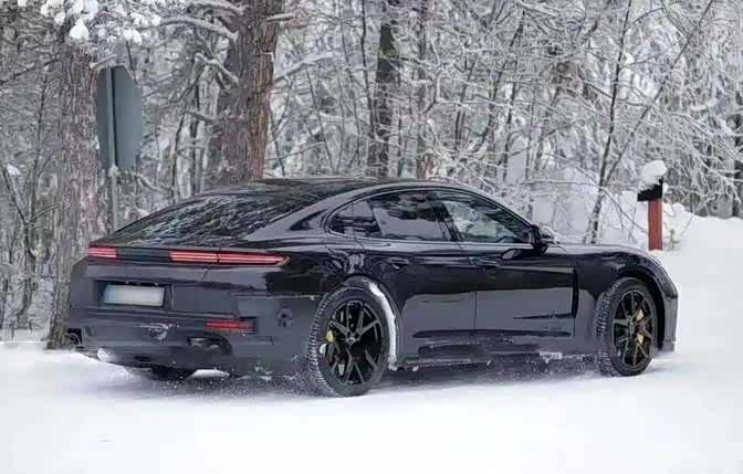 车尾部分,保时捷标志性的可升降自适应扰流板得以保留。尾灯中间区域被伪装覆盖,预计会加入可点亮的品牌字母标识。后包围也同步进行修改,两侧预计会新增传感器,让车身侧面线条略有变化。