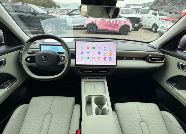 内饰设计,我主观感受是同级别做得出色的代表,这也是QQ3给我印象最深的地方,打孔的皮质座椅,超大的中控屏幕,软皮包裹。