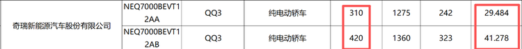新车有两种电池规格,分别搭载29.484/41.278千瓦时动力电池组,对应的续航里程为310公里和420公里。