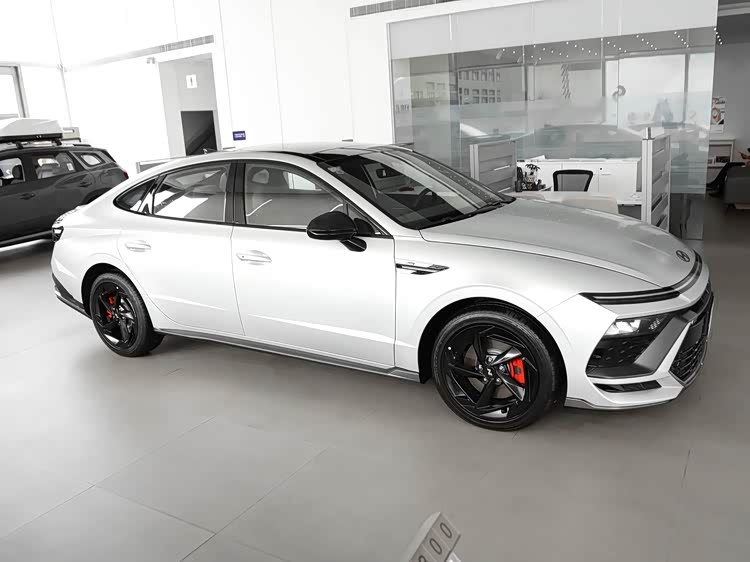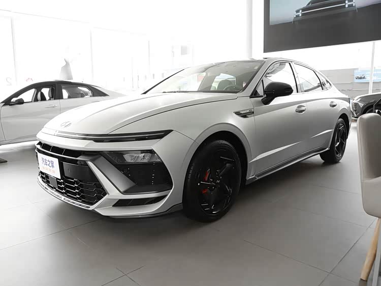 我们首先来看新车的外观设计方面,索纳塔的前脸设计灵感源自“星际战舰”,通过参数化格栅与贯穿式LED日行灯的组合,营造出未来感十足的视觉效果。 多边形大嘴式中网搭配镀铬饰条,既保留了现代家族的辨识度,又增添了运动气息。 头灯采用分体式设计,主灯组内嵌LED光源,辅以自动水平调节和自适应远近光功能,确保夜间行车安全。 前保险杠线条凌厉,配合可点亮灯带,不仅提升了空气动力学效率,还强化了科技氛围。 整体而言,车头造型在稳重与激进间取得平衡,吸引追求个性的消费者。