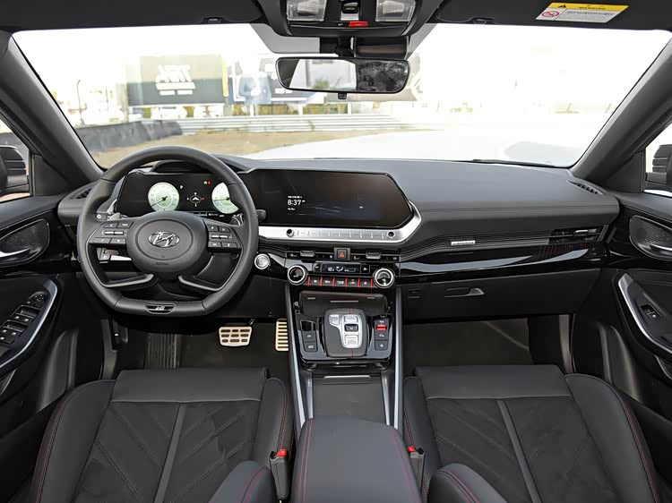 进入车内,现代菲斯塔的内饰以“科技运动”为核心,整体采用T字形布局,中控台略微向主驾倾斜8度,便于驾驶员操作,智能配置方面,新车搭载10.25英寸全液晶仪表+10.25英寸中控屏的悬浮式双屏设计,操作流畅顺滑,搭载智能网联4.0系统与百度智能生态,支持语音指令区域识别、CarLife手机互联映射等功能,空间表现方面,2700mm的轴距为车内提供了充裕的基础乘坐空间。体验者身高175厘米,坐在前排调整到合适坐姿,头部距车顶还有一拳;保持前排座椅不动,后排腿部空间可达两拳,头部空间约四指,基本满足日常通勤与短途出行需求。