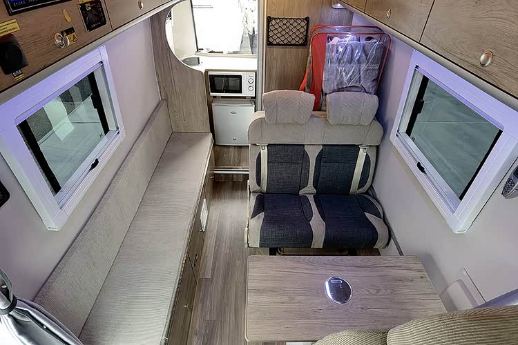 该车搭载了一台1.8L自然吸气发动机,最大功率98kW,传动系统是5MT手动变速箱,动力输出并不强,满载爬坡时比较吃力,不适合高原或高速频繁超车,而且发动机噪音还不小。不过在城市郊区短途露营和周末家庭出游时,还是够用的。它的实测油耗为7.5L/100km,对于一辆自行式房车来说,这样的油耗表现完全可以接受。