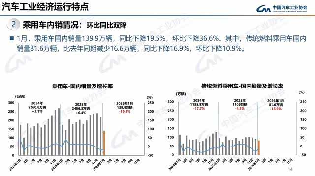 根据中汽协数据,今年1月国内乘用车共销量139.9万辆,同比下降19.5%。,2 月恰逢春节,1 月本应迎来春节前的购车小高峰,此番表现却与市场预期形成明显反差。