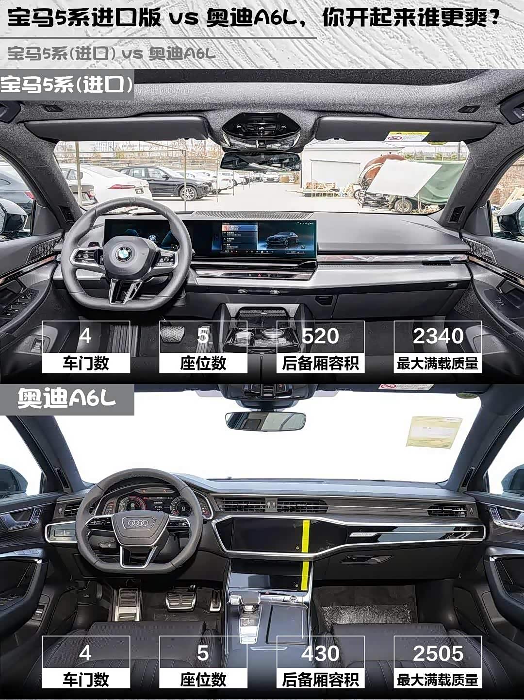 想要纯粹驾驶乐趣、注重操控精准度的选宝马5系(进口);更看重商务气场、需要大空间和四驱保障的选奥迪A6L。两台车落地价相差不大,但宝马的进口身份和标轴设计确实更个性,奥迪则胜在均衡实用。