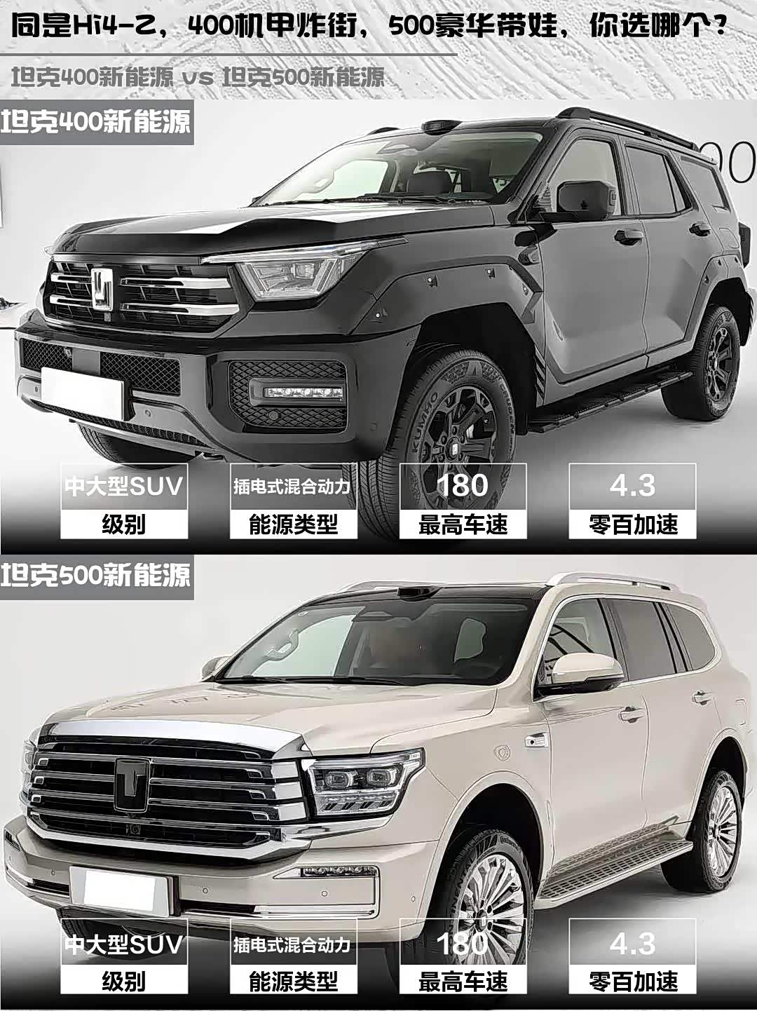 最近深度试驾了 坦克400新能源(参数|询价) 2026款 Hi4-Z 智享版和坦克500新能源 2026款 Hi4-Z 智享版,两款同门兄弟却性格迥异,纠结选谁的朋友看过来!🚗💨