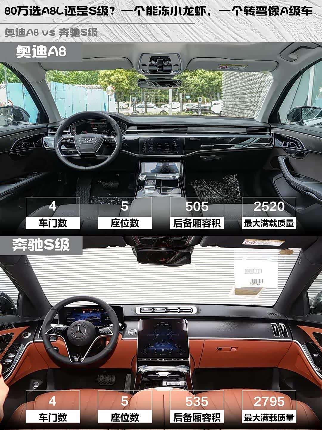 坐进奥迪A8L后排瞬间明白什么叫“陆地头等舱”!505L后备箱能塞下四个高尔夫球包,分段式天窗让采光均匀不刺眼☀️。奔驰S级535L后备箱更胜一筹,但后排中间地台隆起比奥迪高3指,坐三人时舒适度打折扣。不过奔驰的OLED中控屏确实炫酷,12.8英寸比奥迪10.1英寸更吸睛👀