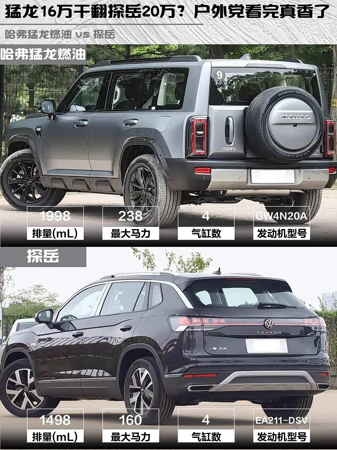猛龙16.69万指导价比探岳便宜3万2,还送5年基础保养。不过探岳现在有3000万纪念版专属礼包,贷款免息政策更灵活。