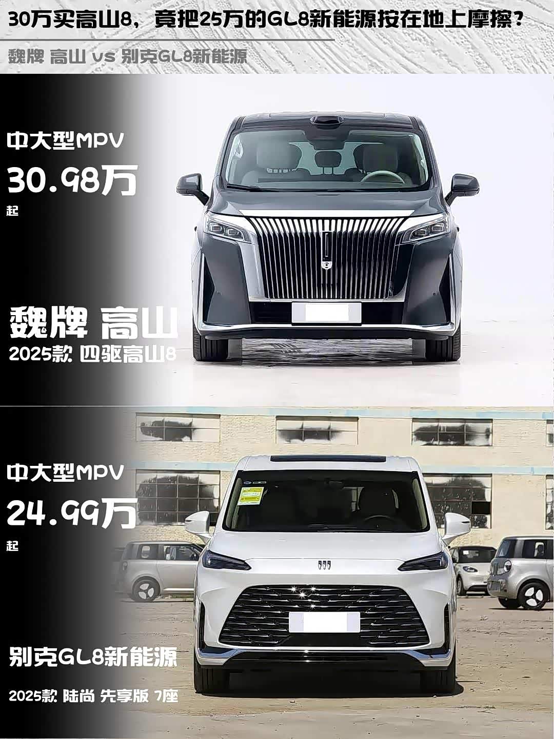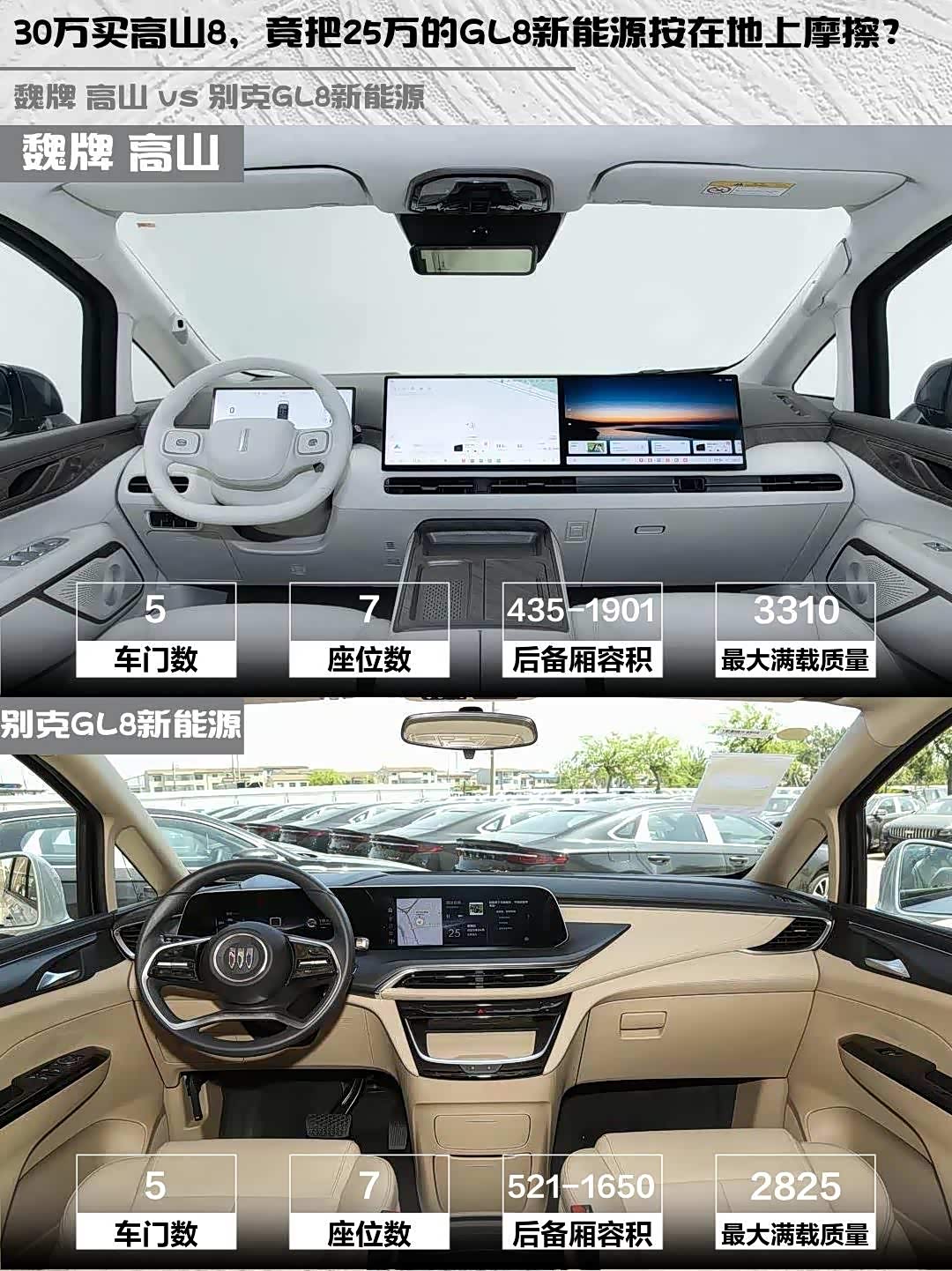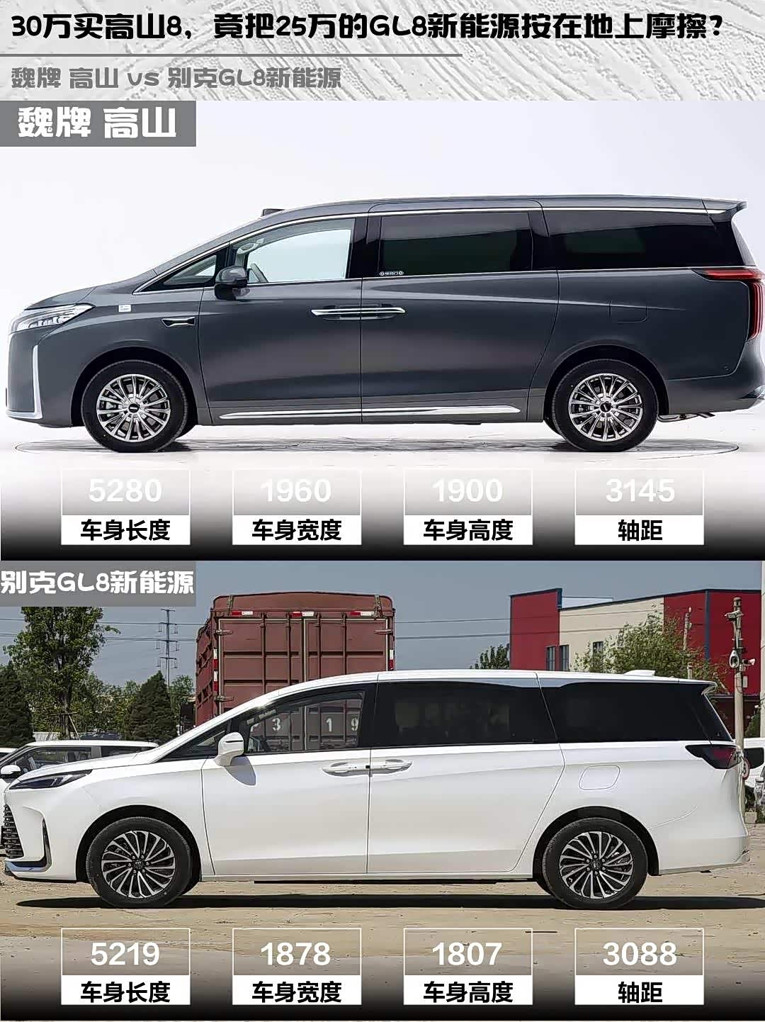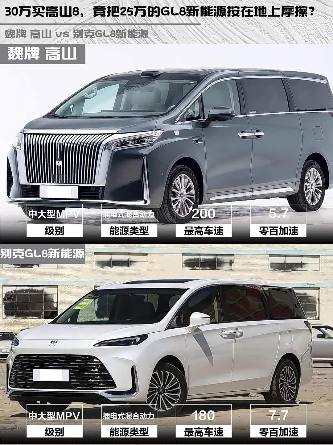 最近在选家用MPV的朋友看过来!今天深度对比两款热门插混MPV——魏牌 高山2025款四驱高山8和 别克GL8新能源(参数|询价)2025款陆尚先享版7座,实测干货直接奉上👇