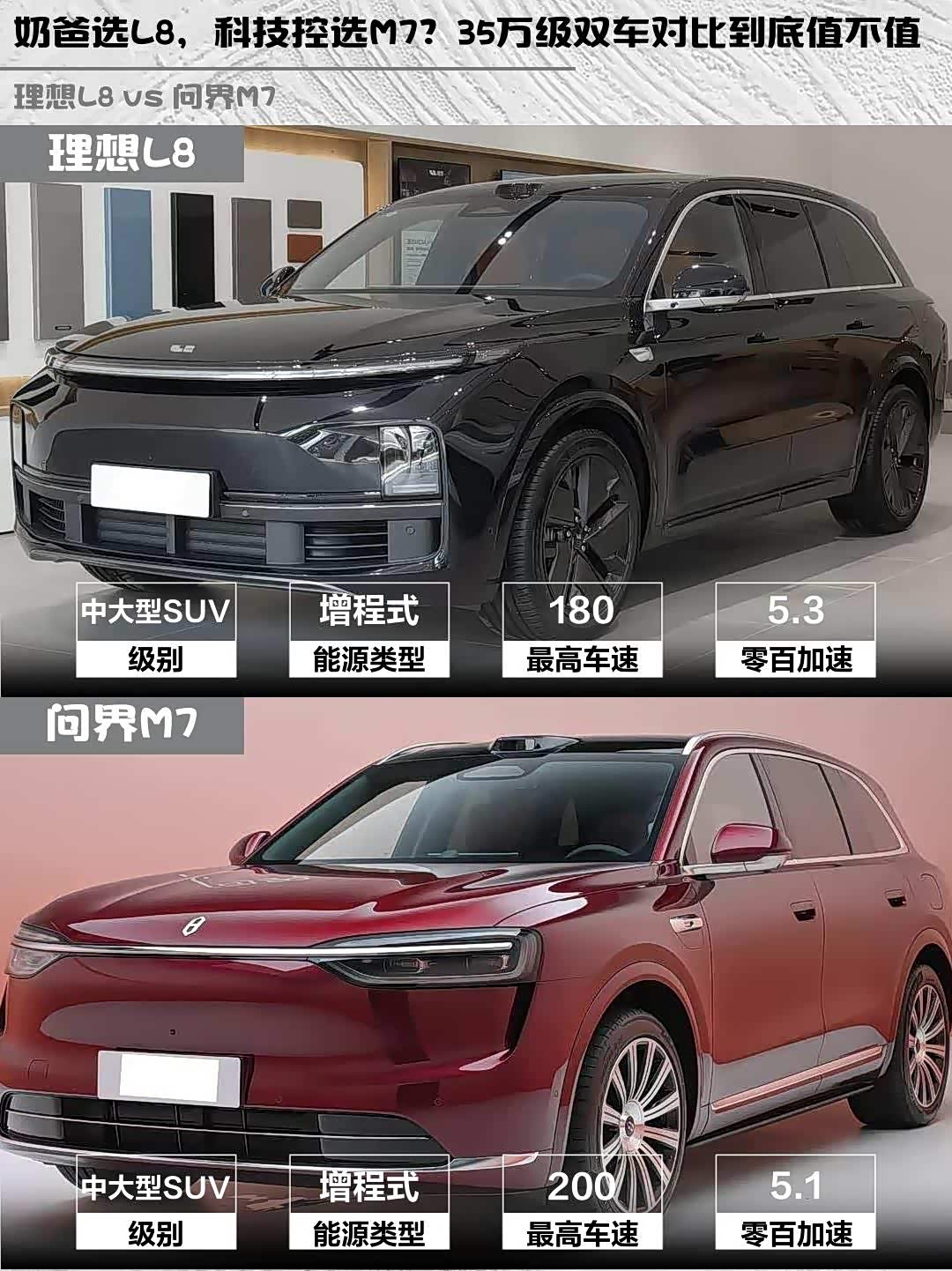 最近在纠结 理想L8(参数|询价) 2025款 Max智能焕新版和问界M7 2026款增程Ultra四驱版5座的朋友看过来!作为深度体验过两台车的车主,掏心窝子分享真实对比感受👇