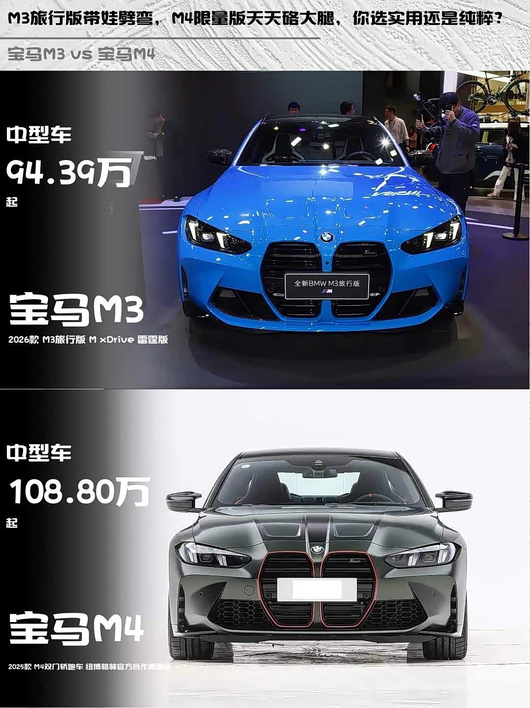M3旅行版带娃劈弯,M4限量版天天硌大腿,你选实用还是纯粹?