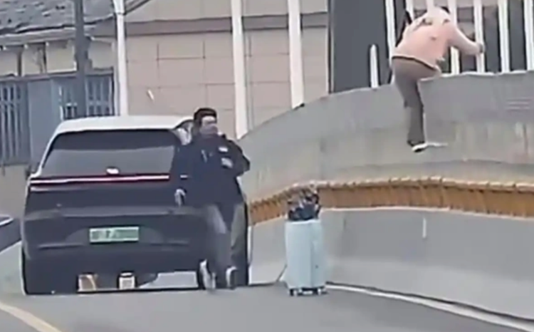当天中午时分,他开着自己的黑色 理想L9(参数|询价),途径海盐西塘大桥时,无意间从后视镜瞥见了一幕惊魂瞬间:一名身穿粉色上衣的女子情绪激动,将行李箱扔在路旁,翻越护栏,她的一只脚已悬在桥外,身下是十余米深的运河,稍有不慎便会坠入深渊,生死就在一念之间。