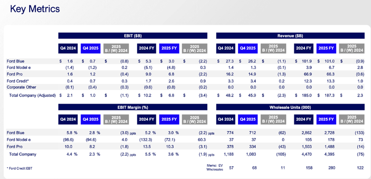 虽然业绩不太好看,并没有浇灭法利的乐观情绪,其表示尽管特殊项目拖累了财报,但2025年的整体表现证明,福特的核心业务正在稳步改善。