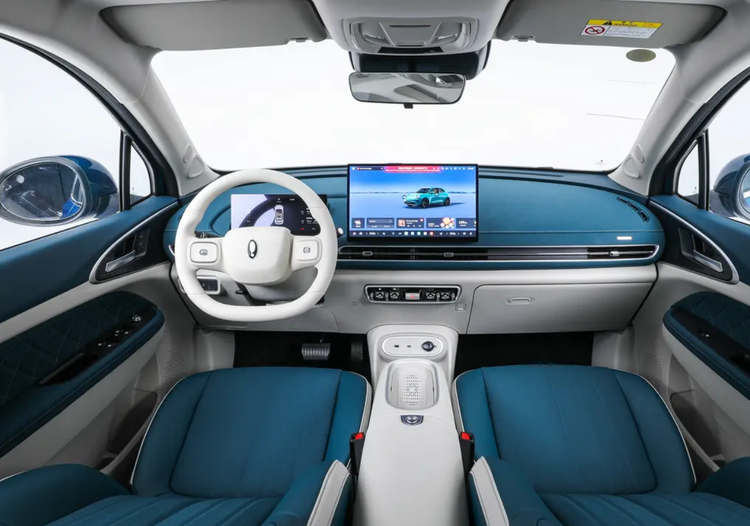 来到内饰,经过用户反馈之后,车机屏幕也升级到14.6英寸,优化后coffee OS系统更加流畅,同时UI界面更加简单好用,涵盖的APP也是更多,也是可以实现车内K歌功能了。同时用料上也是比同级车更高级,比如蓝色区域都是皮革材质包裹,座椅上也有一抹米白色加持,可以说内饰营造出的时尚氛围特别抢眼。包括座椅的舒适度和柔软度都很高,它是标配有电动座椅调节功能,前排也有无线充、车窗一键升降,贯穿式的空调出风也让车内更简约时尚。多功能方向盘的手感很饱满,相对来说欧拉好猫的前排空间还是非常宽敞的。