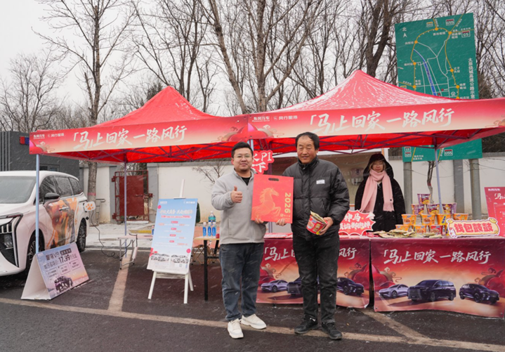 比如当你在归途中遭遇车辆出现胎压异常、玻璃水和防冻液报警等问题,即可前往东风风行在高速服务区设立的“风行暖心驿站”,会有工作人员为车辆提供快速检测、应急补给和应急维修咨询等标准化、人性化的应急服务。同时,考虑到车主检测期间的休息等候需求,东风风行还贴心准备了一系列趣味互动,比如车主凭驾驶证打卡就能领取“返乡温暖套餐”,集赞还能兑换精美新春礼盒,甚至可坐在现场摆放的 星海V9(参数|询价)等风行星海系列车型的座舱内,吹着暖风品鉴新车,还能领取风行暖心礼包。这般贴心的服务,让每一位返乡车主都能感受到实实在在的温暖。