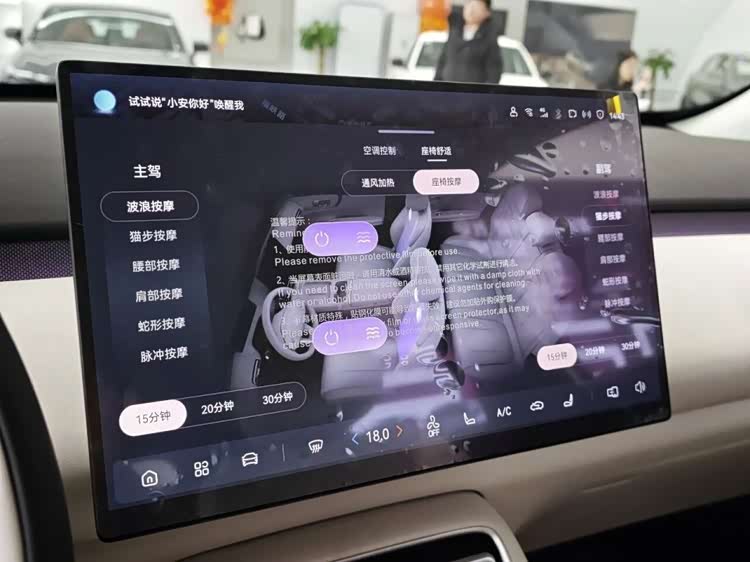 配置延续了启源A06那种很“舍得给”的作风,展车是售价为9.49万元的506 Max版,就已经配备了副驾驶大角度的腿托与主副驾多模式座椅按摩,并且这些高级配置的体验都不差,完全不是那种“配上就完事了”的糊弄作风。