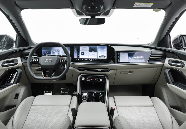 奥迪新Q5L的内饰则展现了德系豪华的精密与科技感,线条简洁、层次分明,以软性材质、真皮及金属饰条为主,豪华感符合同级别标准。全系标配11.9英寸仪表+14.5英寸OLED中控屏,内置全域生态系统,集成高德地图、爱奇艺、微信等。