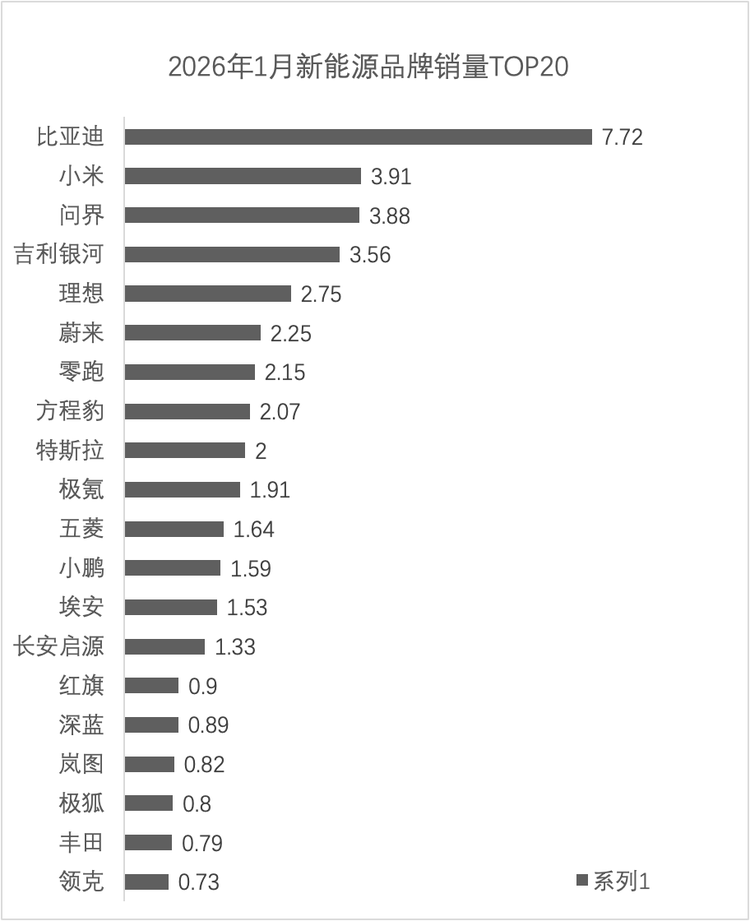 2026年1月,中国新能源市场真的“变天了”,一句话就是:除了小米,开年谁家不冷?