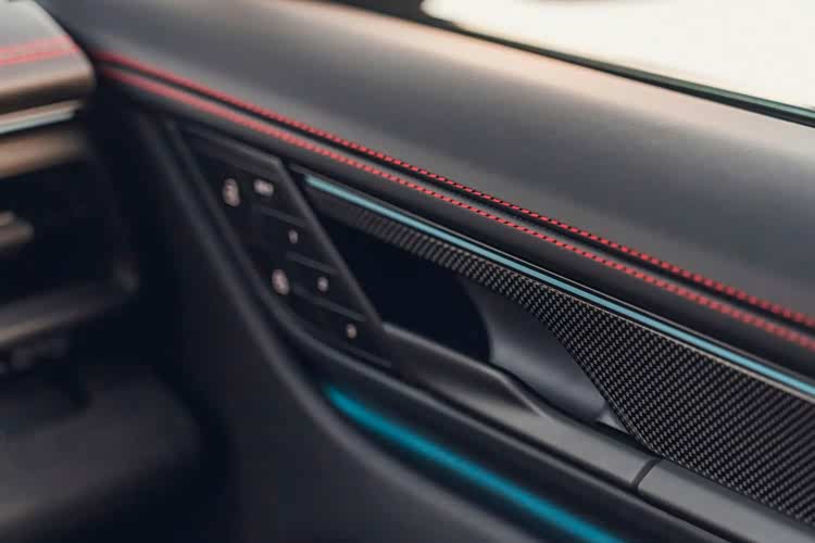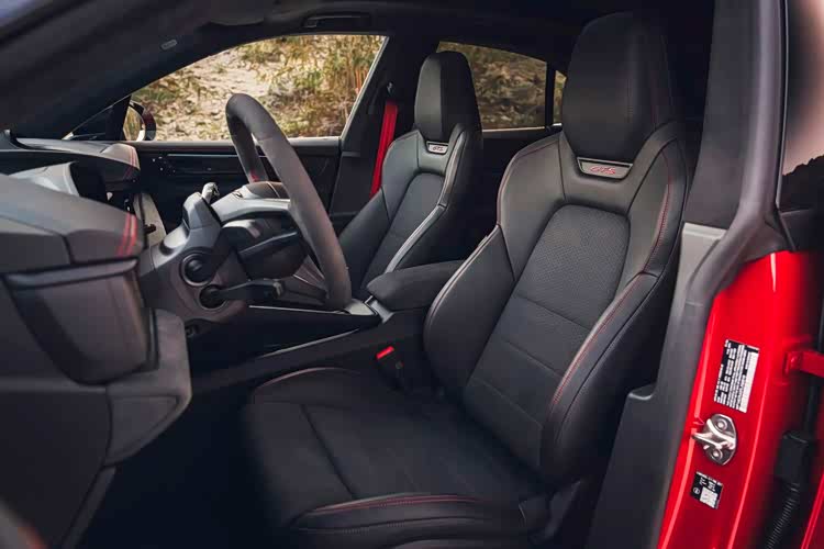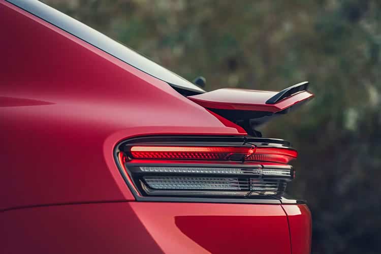 车尾部分,贯穿式的尾灯也依旧简洁,左右两侧额外加粗,中央是黑色装饰条相连,掀背式尾门、主动式尾翼等元素都得到延续,后保险杠部分再度突出,加入了扩散器装饰,让整车的风格形成统一。内饰部分,标志性的弧面悬浮式液晶仪表盘,中控液晶屏等配置也都会得到延续,T字形的中控台面,有着大面积翻毛皮和红色缝线进行补充。全翻毛皮方向盘更加的激进,座椅门板扶手等处也不吝啬,碳纤维面板,醒目的GTS标、红色方向盘等元素,刺激驾驶者的战斗神经。