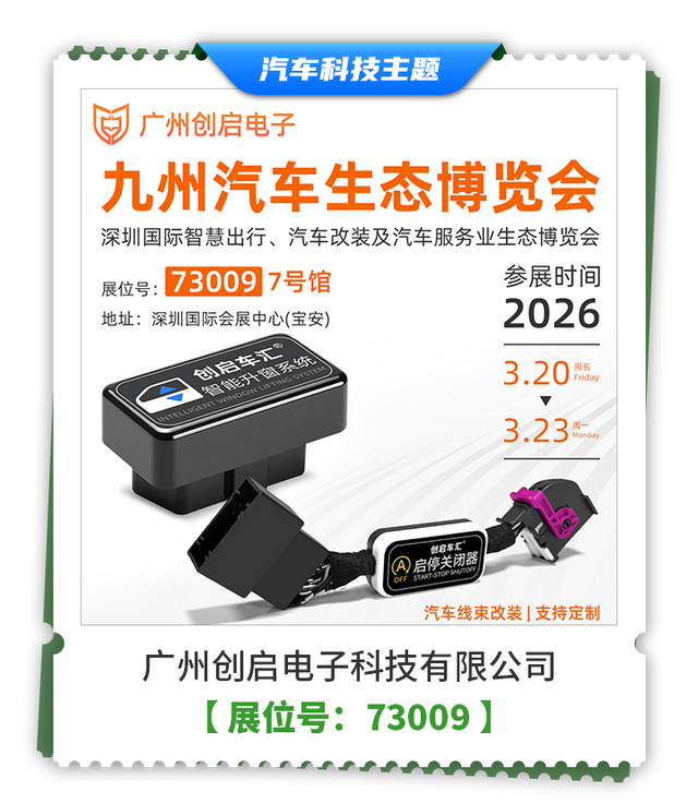 2026九州汽车生态博览会(下简称:九州展)即将于3月20–23日在深圳举办,是全球第一个覆盖乘用车和商用车市场的全产业链生态平台,整车发布、汽车科技、汽车零部件、汽车改装、汽车文化的新产品、新技术、新模式、新项目年度发布与采购平台。