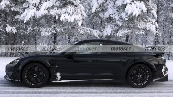 最近外媒拍到了一组新款高性能 Taycan(参数|询价)的实车谍照,名字还没定,但大家都管它叫Taycan GT4 RS。这车不是普通的改款,是保时捷拉着Manthey Racing一起搞的——这家赛车机构的总部就在纽博格林赛道边上,专门干一件事:让保时捷跑得更快。