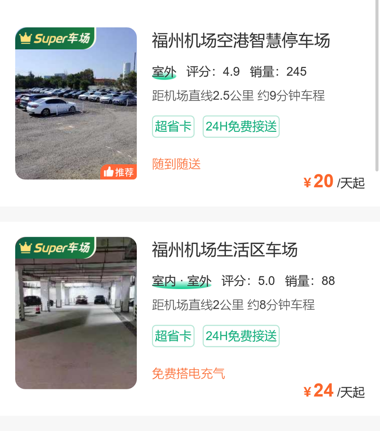 如果是在机场停车时间较长,除了过夜停车场外,还可以选择机场附近停车场,收费只要15到25左右一天,而且停车场包接送,要看看附近有哪些停车场,现在也很方便,直接在淘车位小程序就能看到,而且各种详细信息应有尽有。