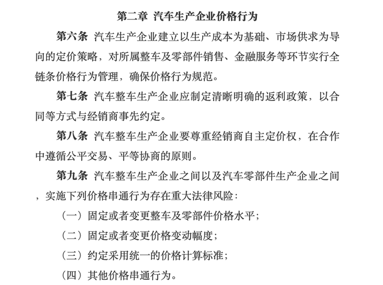 现在《指南》明确了,汽车交易平台要履行自己的责任,不能强制商家参与促销,还要对平台上的异常低价行为进行风险提示。同时,不管是汽车生产企业,还是销售企业、平台,都要建立自己的内部合规机制。