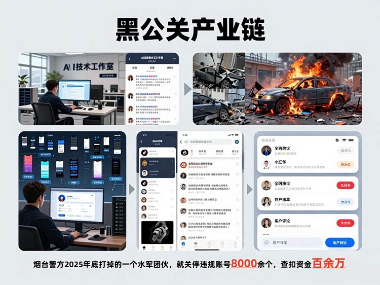 水军矩阵则负责承接这些恶意素材,按照要求批量发布、刷量。他们通过QQ、微信群互换资源,操控数万甚至数十万账号,在短时间内,把这些恶意内容铺满抖音、微博、小红书、车家号等所有车圈热门平台,制造“全网都在吐槽某车企”“某车型根本不能买”的虚假舆论,甚至能利用平台算法漏洞,冲击热搜榜,进一步放大负面影响。烟台警方2025年底打掉的一个水军团伙,就关停违规账号8000余个,查扣资金百余万,其规模之庞大,远超大家想象。