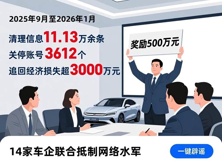 值得欣慰的是,针对车圈愈演愈烈的黑公关乱象,监管部门已经开始重拳出击,绝不姑息。2025年9月,工信部、网信办等六部门联合开展专项整治行动,截至2026年1月,已经清理各类诋毁车企、误导消费者的信息11.13万余条,关停违规账号3612个,帮助车企追回经济损失超3000万元,更关键的是,首次将车企、公关公司、相关媒体一并列为追责对象,传递出“零容忍”的明确信号。