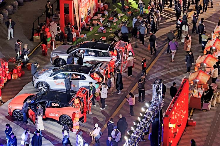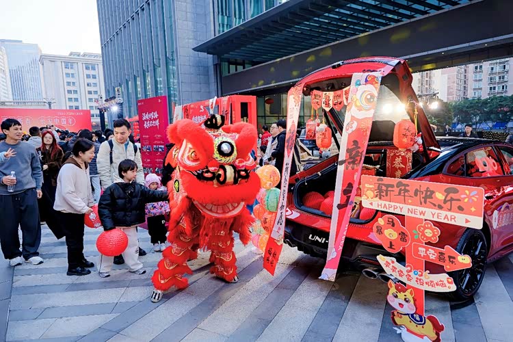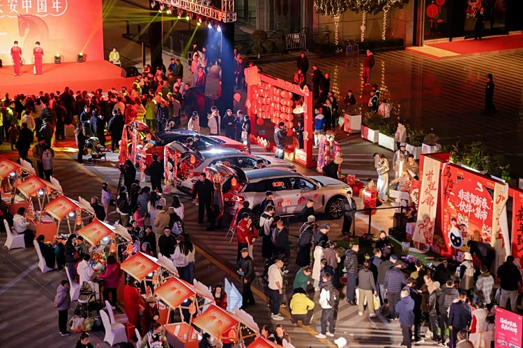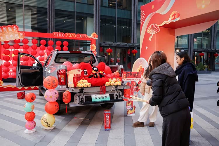 展车区里,长安汽车打造的后备箱非遗集市别出心裁,阿维塔、深蓝汽车、长安启源、长安引力、长安凯程五大品牌主流车型后备箱化身“摊位”,以“一县一摊”的形式展出各区县特产,实现了“赏非遗、品美食、鉴车型”的三重体验,让科技座驾与非遗文化碰撞出别样火花。互动区内,鲤鱼灯舞古风游园浪漫唯美,舞狮队表演热闹喜庆,非遗表演者与现场观众亲密互动,将新春的欢乐氛围拉满,让每个人都能沉浸式感受传统年俗的乐趣。