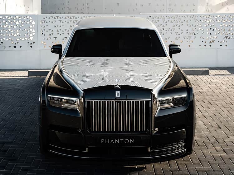 我们首先来看新车的外观设计方面,幻影Arabesque的车头造型,既延续了幻影家族的经典基因,又凭借开创性工艺实现了差异化突破。标志性的帕特农神庙式进气格栅得以保留,采用暗铬边框修饰,搭配可发光设计,在光影下尽显庄重典雅,与格栅上方的“欢庆女神”立像相得益彰,立像姿态依旧优雅,成为车头不可或缺的精神符号。大灯组沿用激光切割LED款式,轮廓与第八代幻影保持一致,照明精度与仪式感拉满,兼顾实用性与奢华格调。车头激光雕刻发动机盖。这项工艺由劳斯莱斯耗时五年研发并申请专利,灵感源自意大利刮刻艺术。