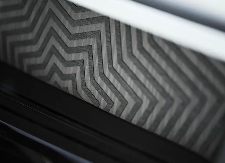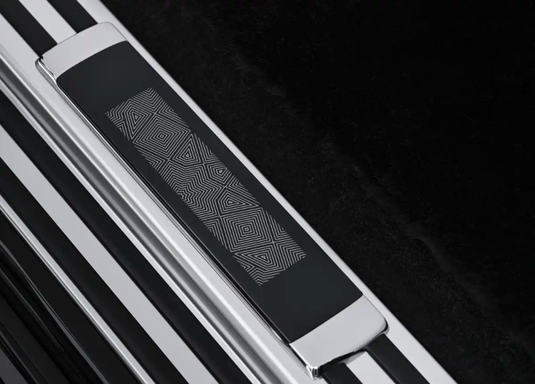 最引人瞩目的当属发动机舱盖,其上运用了劳斯莱斯历经五年研发的激光雕刻专利技术,呈现出精美的图案。该图案的设计灵感源自中东传统建筑中极具代表性的Mashrabiya(一种木雕格栅屏风)艺术元素,在光线的变化下会展现出微妙的视觉效果,极具艺术感染力。