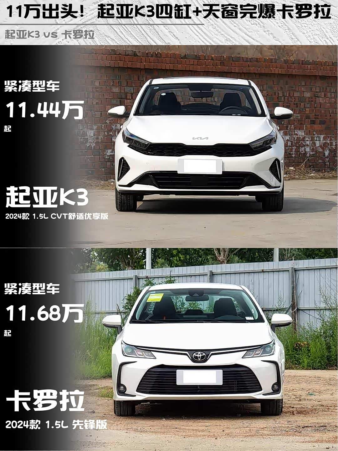 最近在选10万级合资家轿的朋友看过来! 起亚K3(参数|询价) 2024款 1.5L CVT舒适优享版和卡罗拉2024款 1.5L 先锋版深度对比,看完这篇你就知道怎么选了!🔥