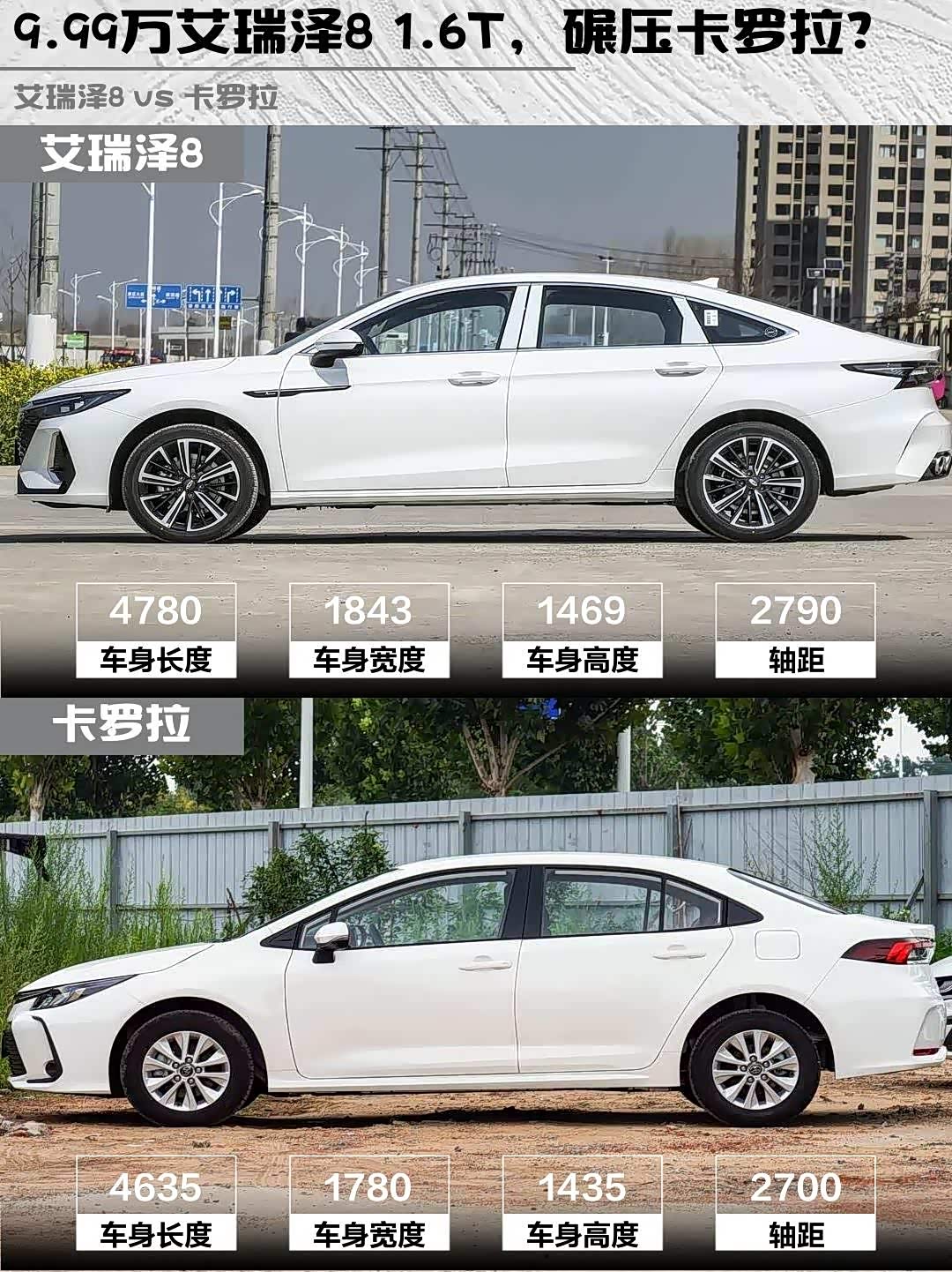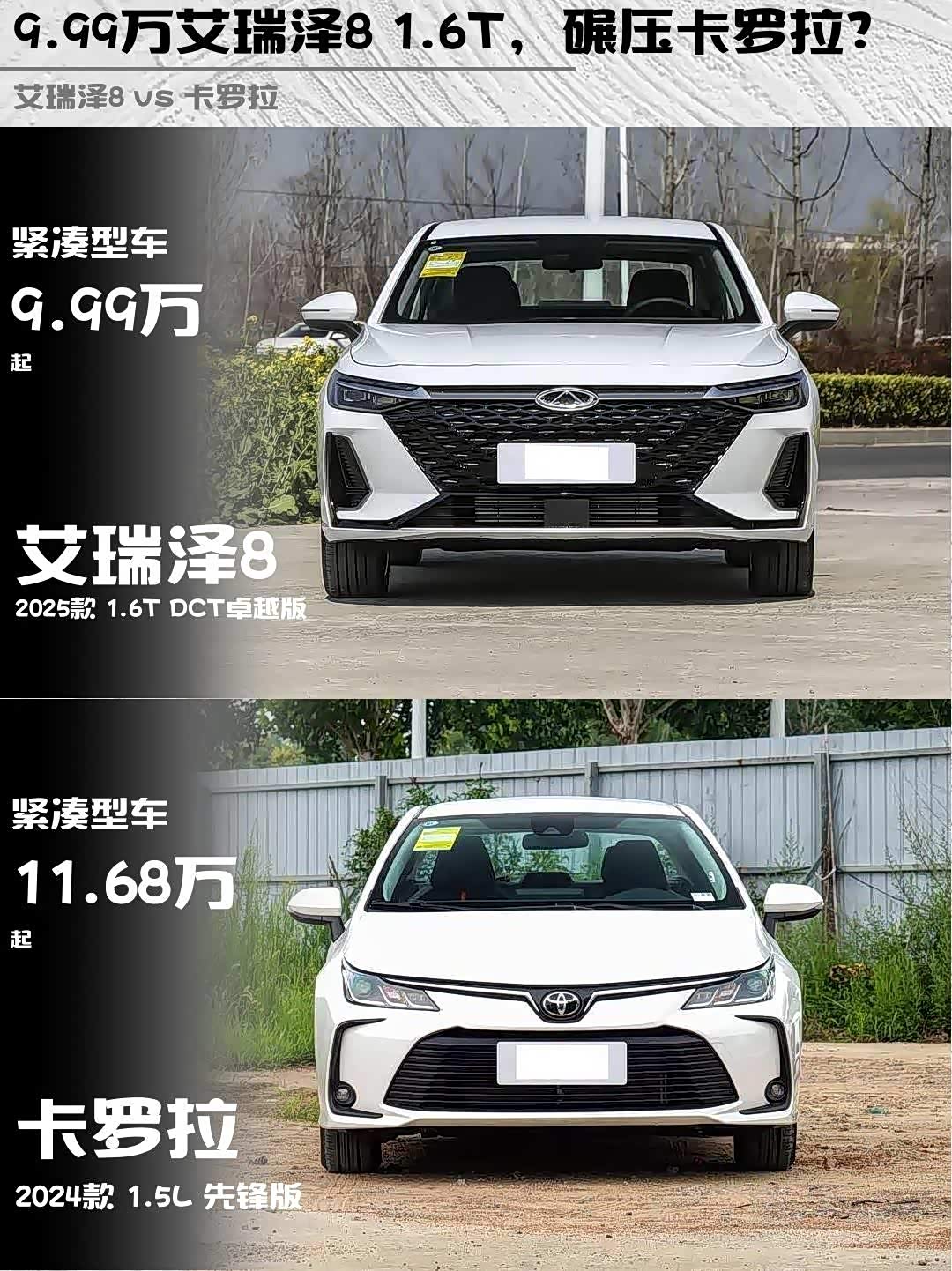 车家号·0浏览·2026-02-14 08:19 · 北京最近在选10万级家轿的朋友看过来! 艾瑞泽8(参数|询价) 2025款 1.6T DCT卓越版和卡罗拉 2024款 1.5L 先锋版实车对比,干货直接上👇