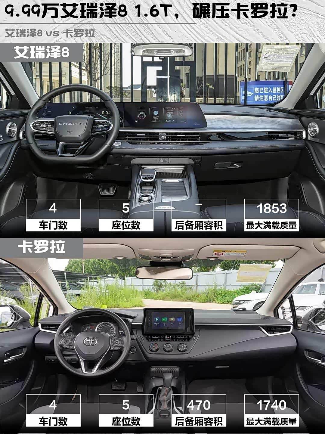 最后说价格,艾瑞泽8卓越版9.99万,卡罗拉先锋版11.68万,差价1.7万够加两年油了。要动力空间选艾瑞泽8,图省心保值就卡罗拉,你们会怎么选?