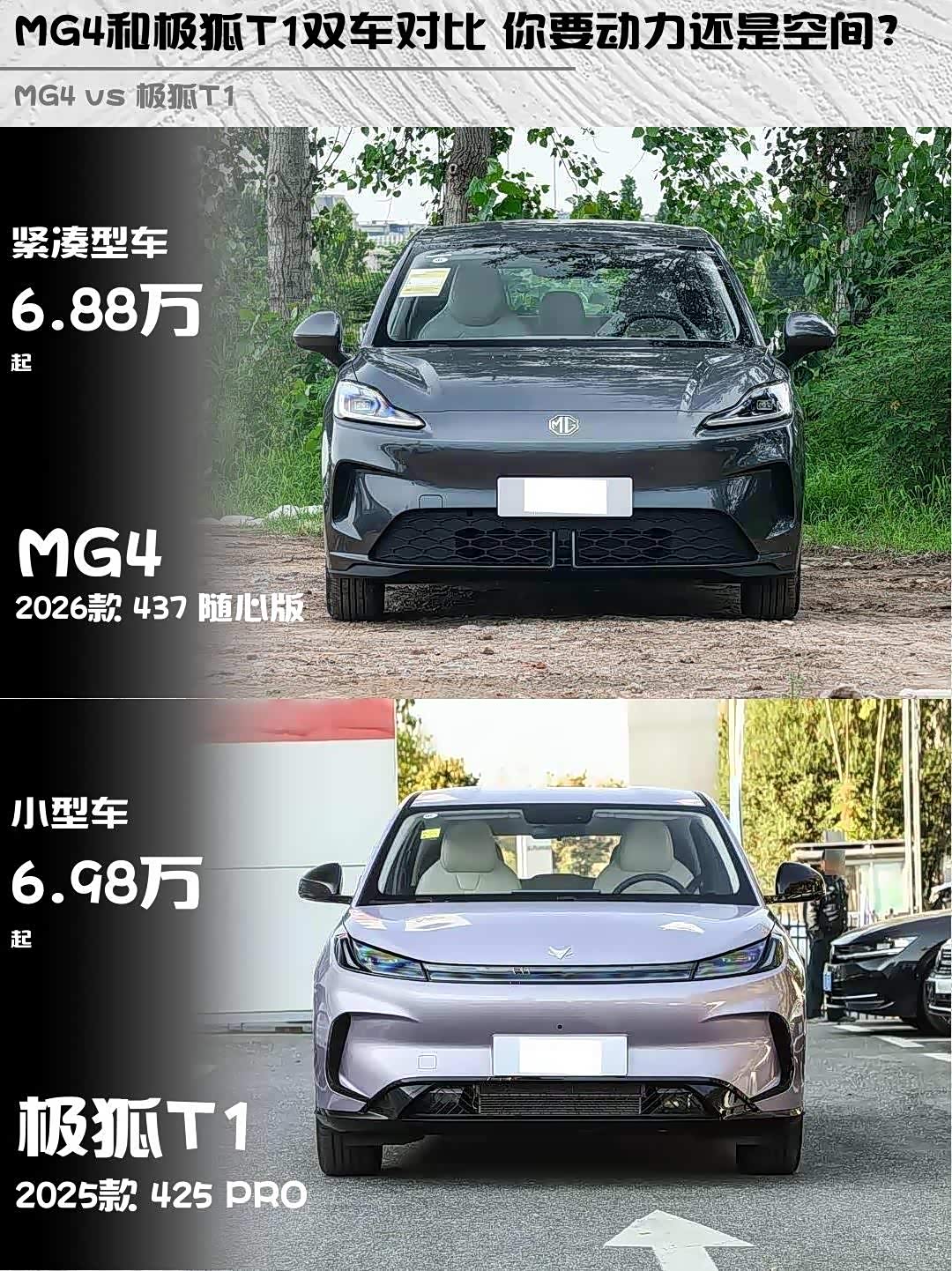 最近在选10万内的纯电车,纠结MG4 2026款 437 随心版和 极狐T1(参数|询价) 2025款 425 PRO好久,深度试驾后终于有结论了!分享给同样纠结的伙伴们👇