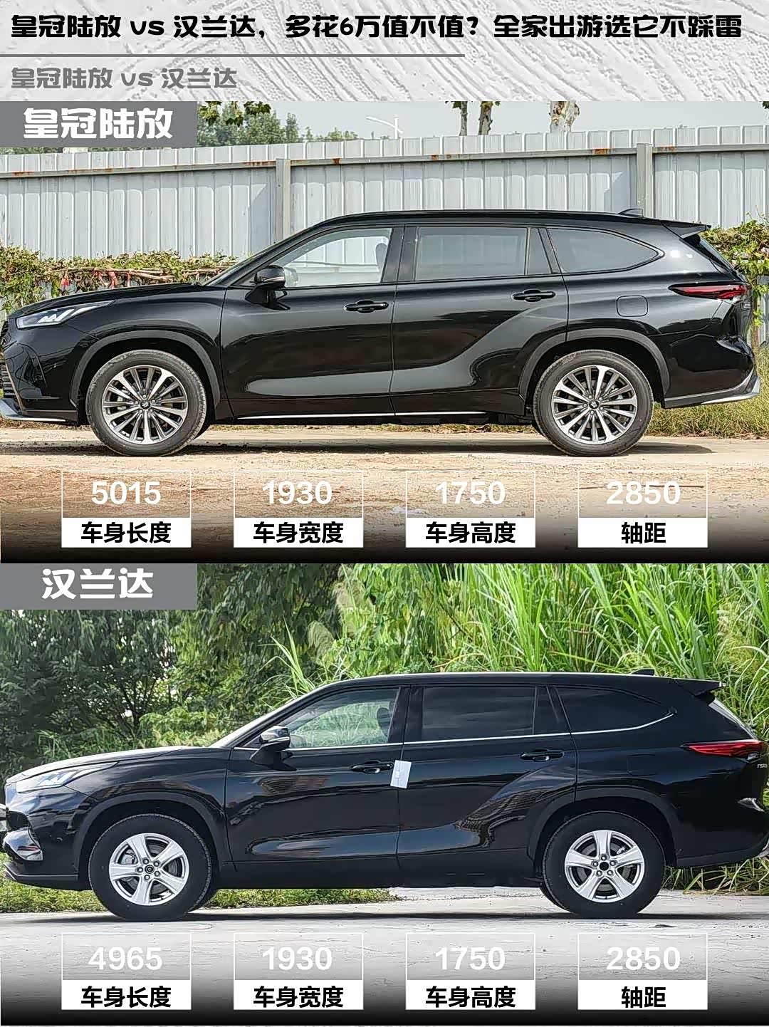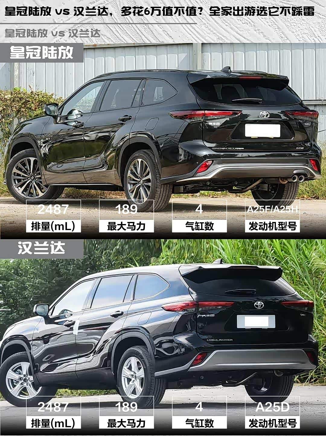 先划重点❗️如果你更看重豪华感和四驱性能,闭眼选皇冠陆放;要是追求极致省油和性价比,汉兰达更适合。两台车虽然共用2.5L混动系统,但定位差异其实很明显!