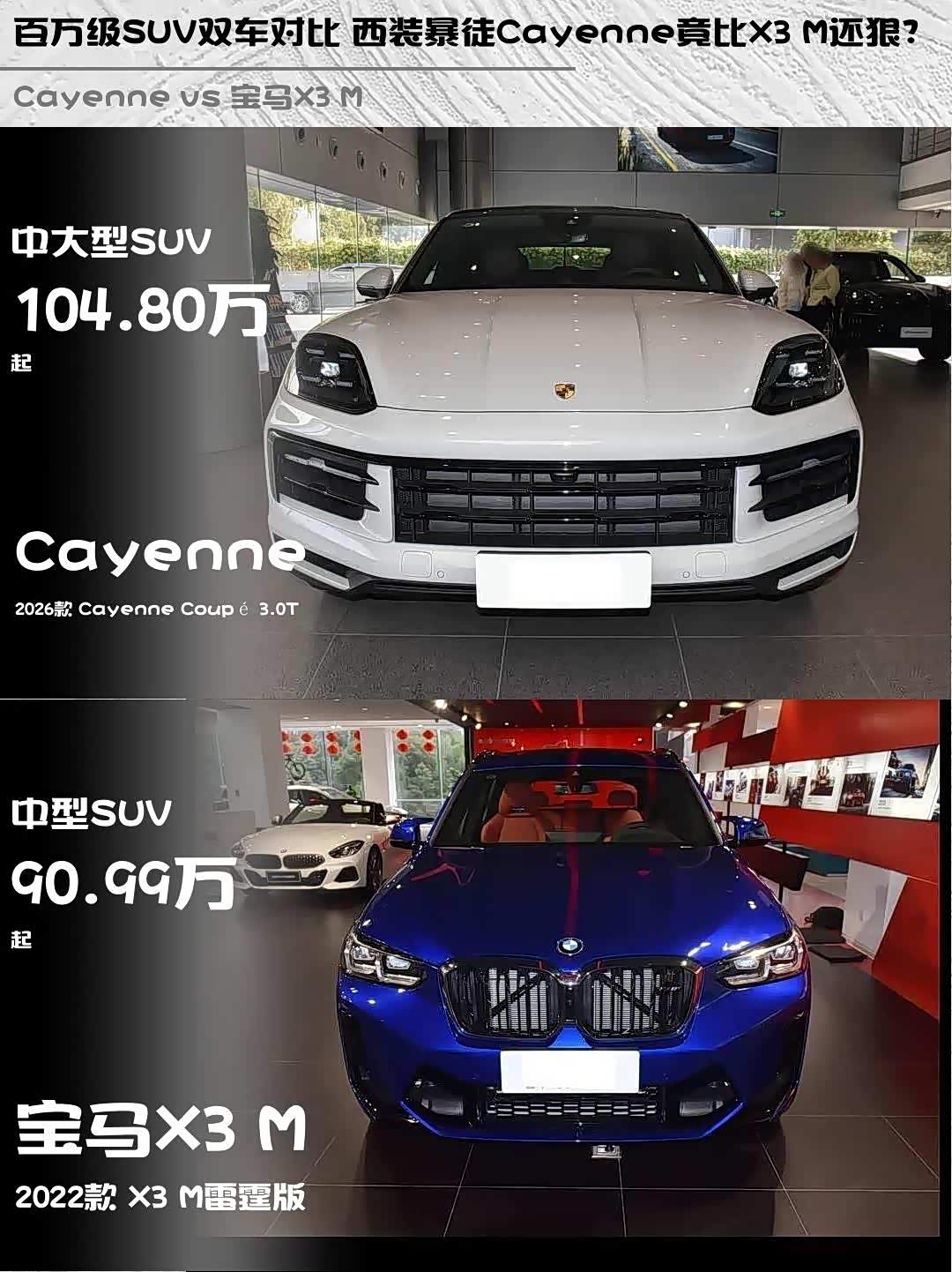 最近深度体验了2026款 Cayenne Coupé 3.0T和2022款 X3 M(参数|询价)雷霆版,两款都是百万级性能SUV的狠角色,但性格截然不同!🔥