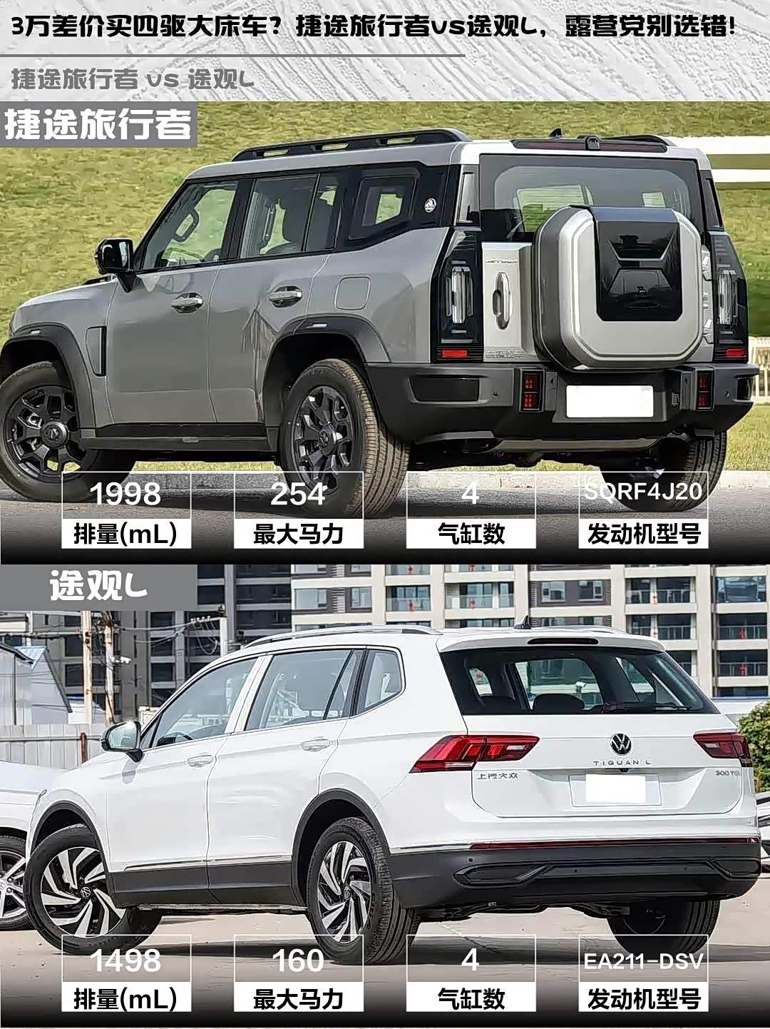3万差价买四驱大床车?捷途旅行者vs途观L,露营党别选错!